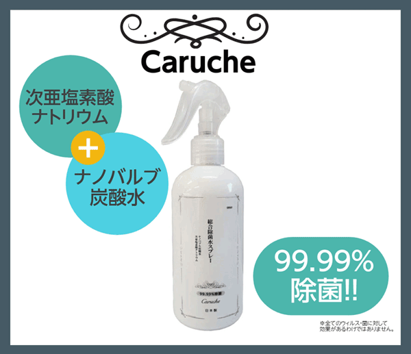 総合除菌水スプレー caruche 次亜塩素酸ナトリウム + ナノバブル炭酸水 300ml 99.99%除菌